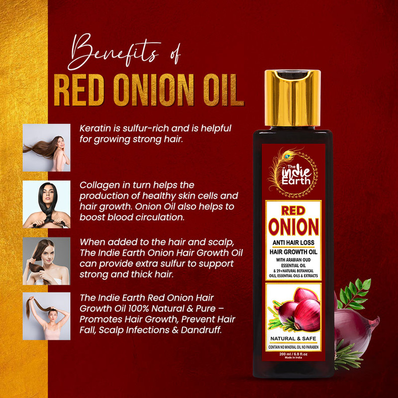 The Indie Earth Red Onion Hair Growth Oil With Pure Argan Jojoba Rosemary Black Seed Oil In Purest Form Very Effectively Control Hair Loss Promotes Hair Growth 100 Natural Hair Food 200ml 6 76